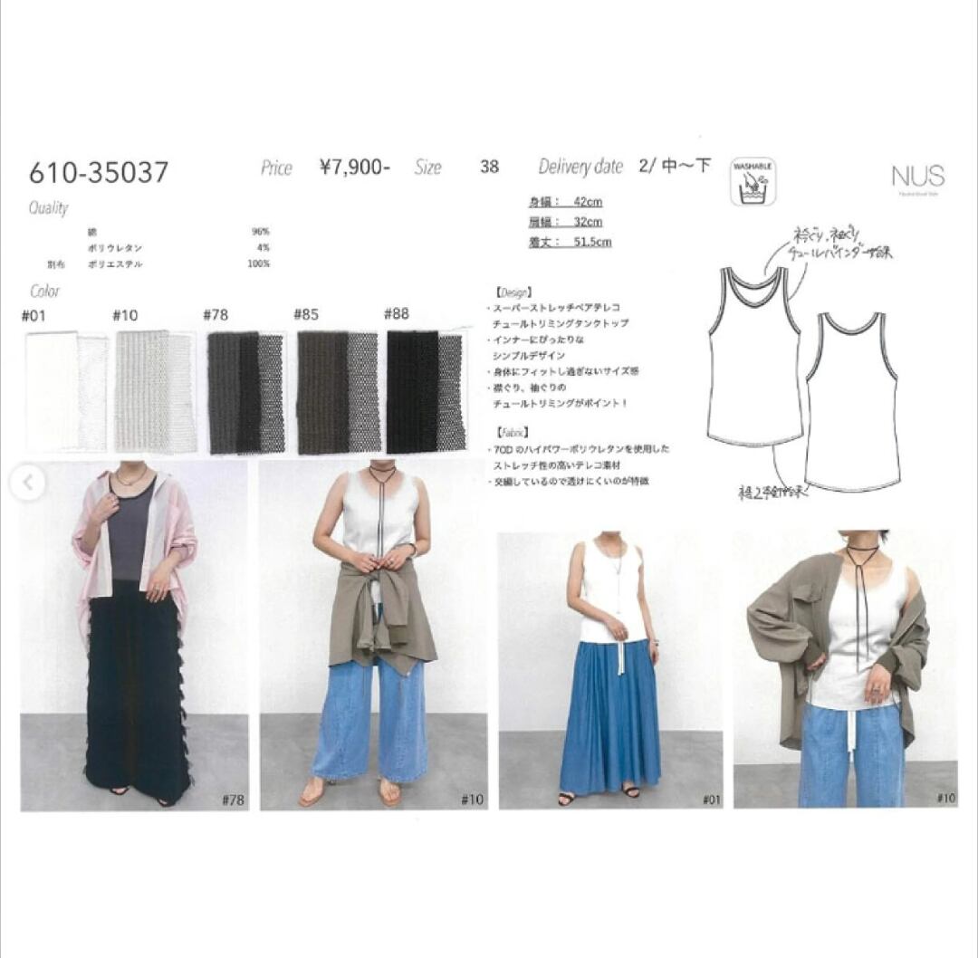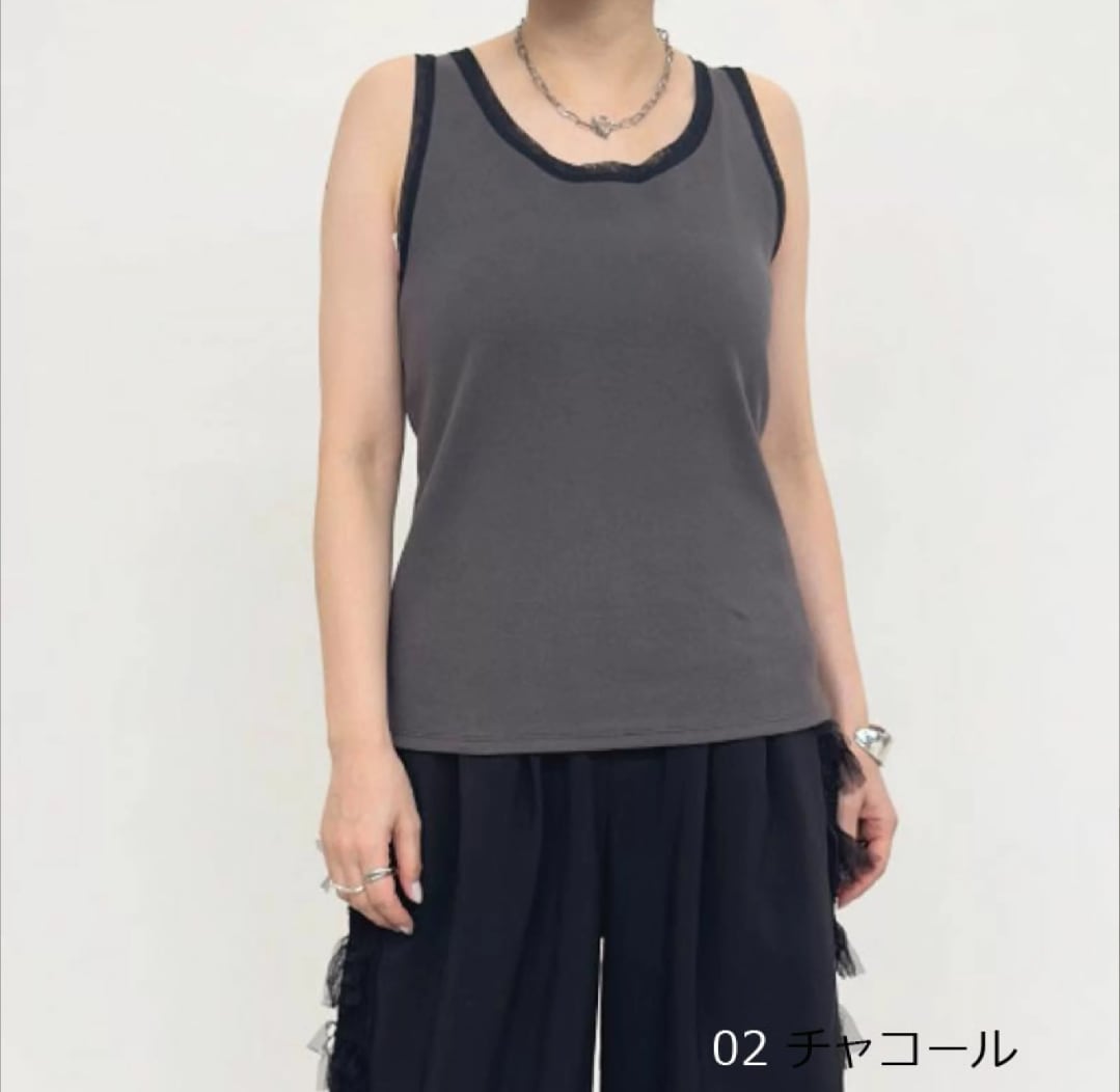 NUS (ヌース)テレコチュールトリミングタンクトップ 61035037★